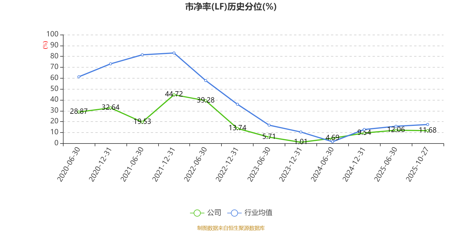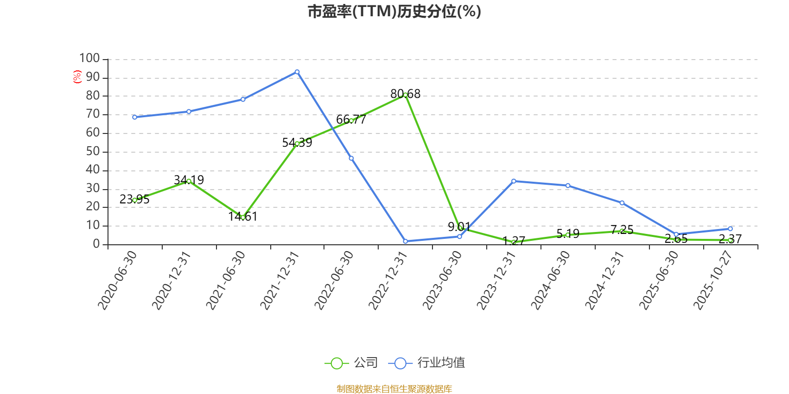 市盈率、市净率为负时,不显示当期分位数,会导致折线图中断。