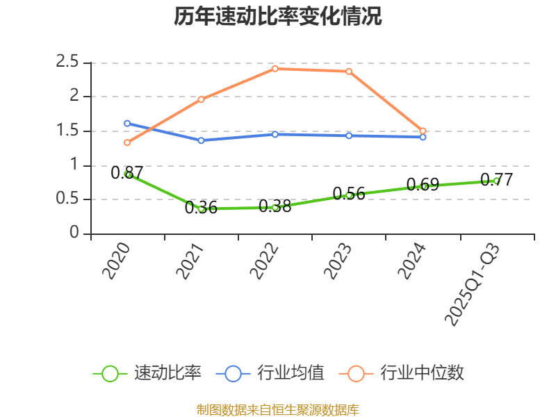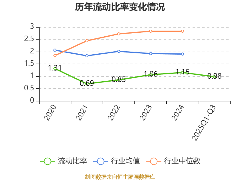2025年前三季度,公司流动比率为0.98,速动比率为0.77。