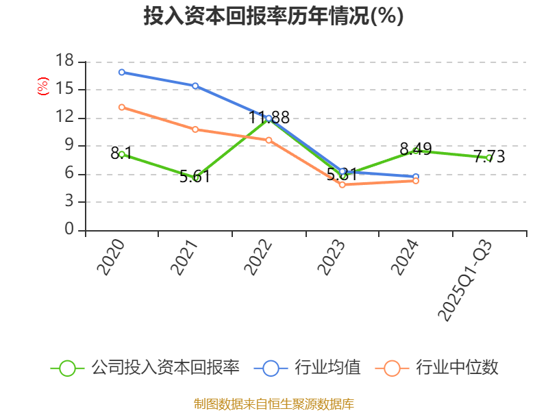 盈利能力方面, 2025年前三季度公司加权平均净资产收益率为12.38%,同比上升3.5个百分点。公司2025年前三季度投入资本回报率为7.73%,较上年同期上升1.51个百分点。