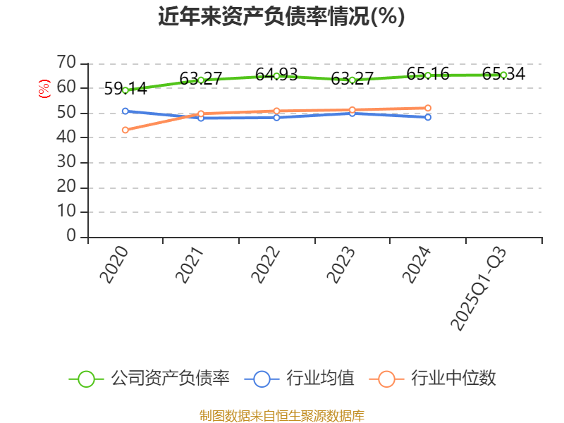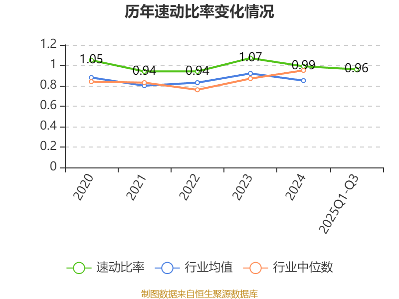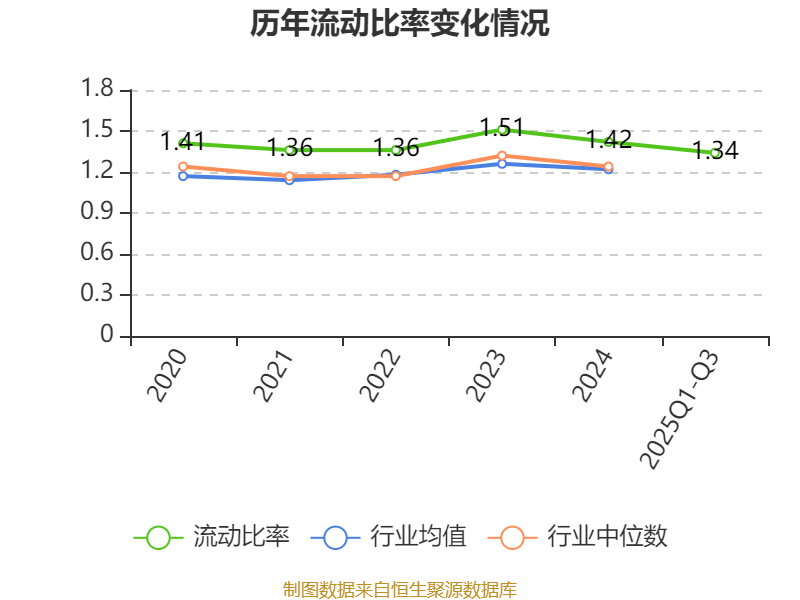 2025年前三季度,公司流动比率为1.34,速动比率为0.96。