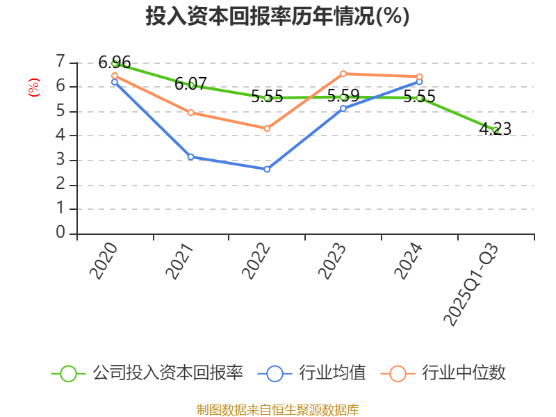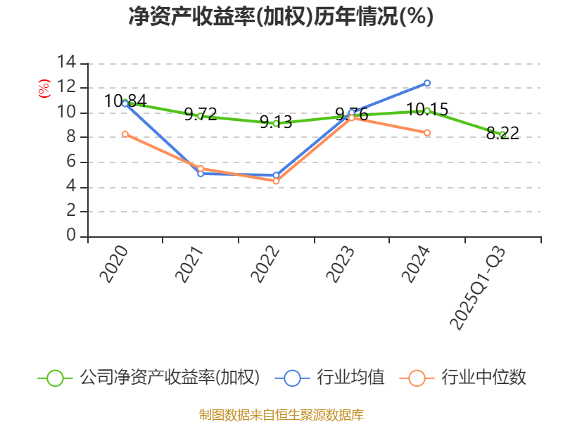 盈利能力方面, 2025年前三季度公司加权平均净资产收益率为8.22%,同比上升1.07个百分点。公司2025年前三季度投入资本回报率为4.23%,较上年同期上升0.24个百分点。