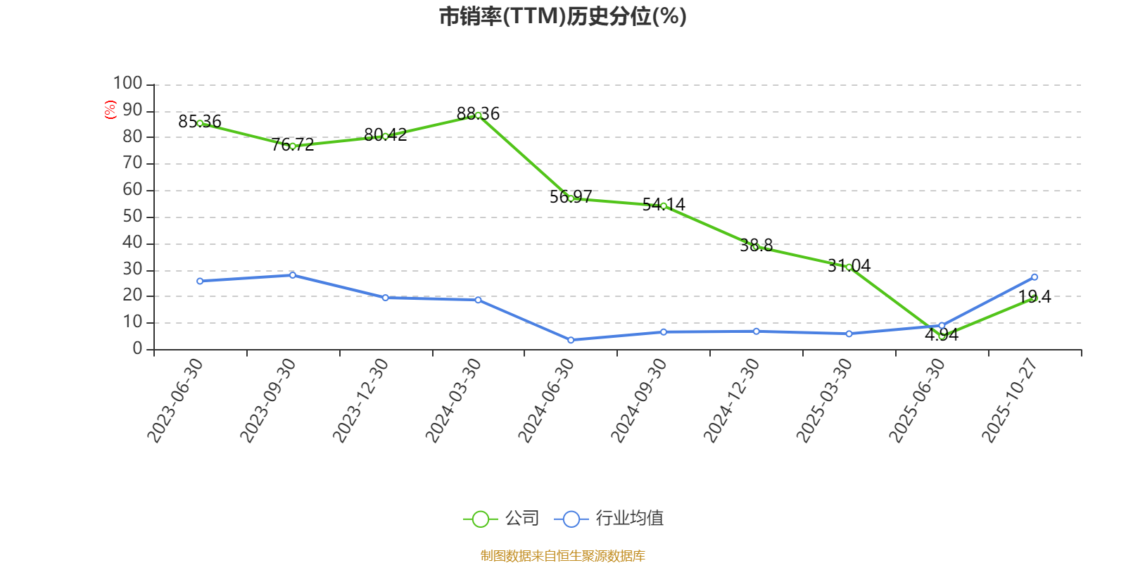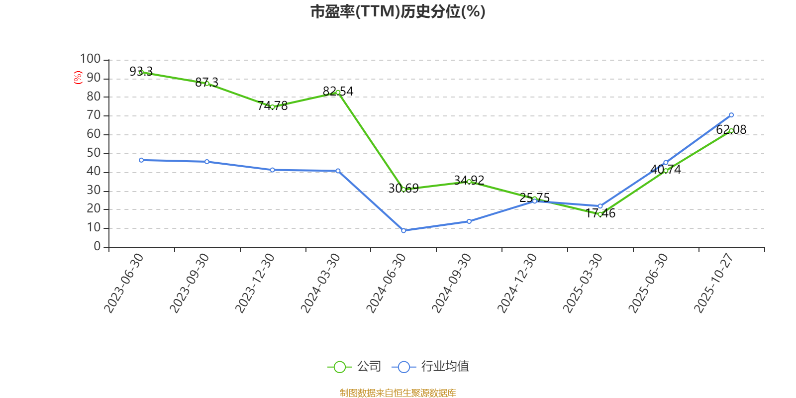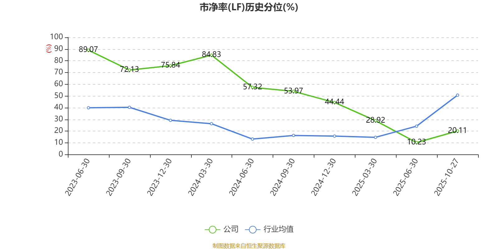 市盈率、市净率为负时,不显示当期分位数,会导致折线图中断。