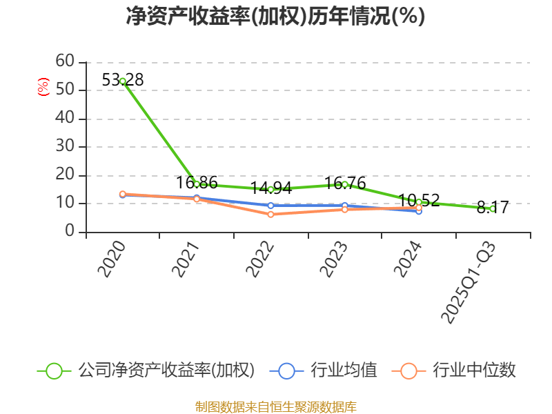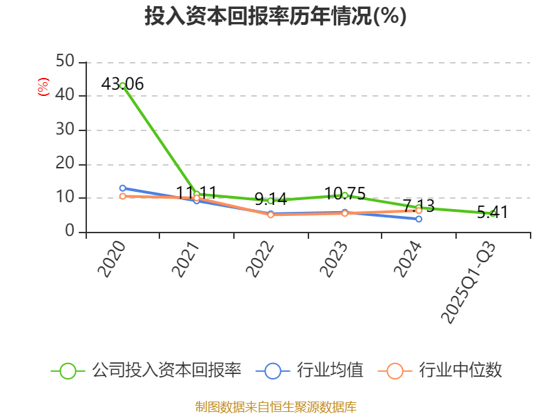 盈利能力方面, 2025年前三季度公司加权平均净资产收益率为8.17%,同比下降0.58个百分点。公司2025年前三季度投入资本回报率为5.41%,较上年同期下降0.36个百分点。