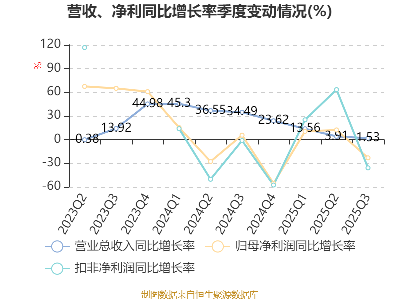 负债重大变化方面,截至2025年三季度末,公司短期借款较上年末减少25.67%,占公司总资产比重下降5.65个百分点;租赁负债较上年末增加44.29%,占公司总资产比重上升4.43个百分点;长期借款占公司总资产的0.68%,上年末为0;其他应付款(含利息和股利)较上年末减少14.94%,占公司总资产比重下降0.42个百分点。