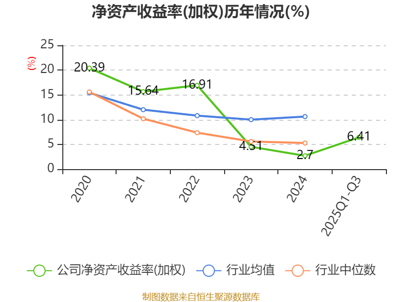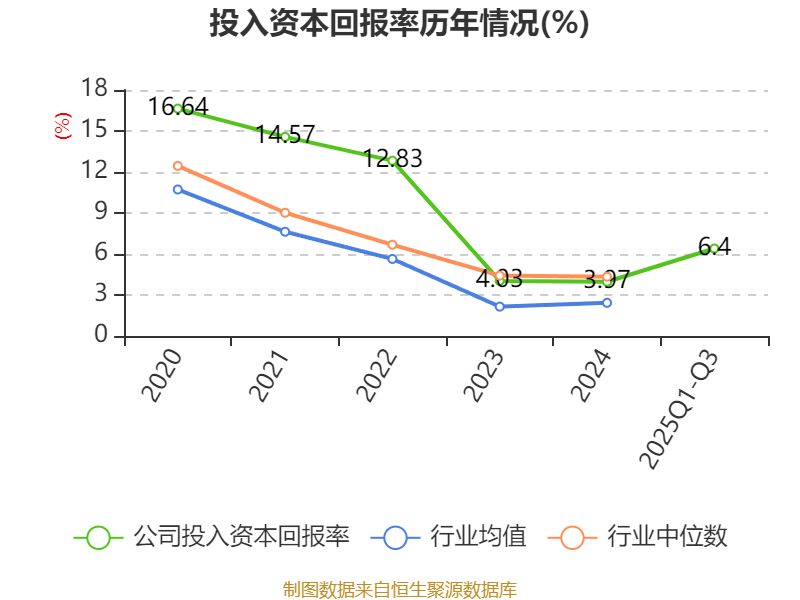 盈利能力方面, 2025年前三季度公司加权平均净资产收益率为6.41%,同比上升4.05个百分点。公司2025年前三季度投入资本回报率为6.4%,较上年同期上升2.87个百分点。