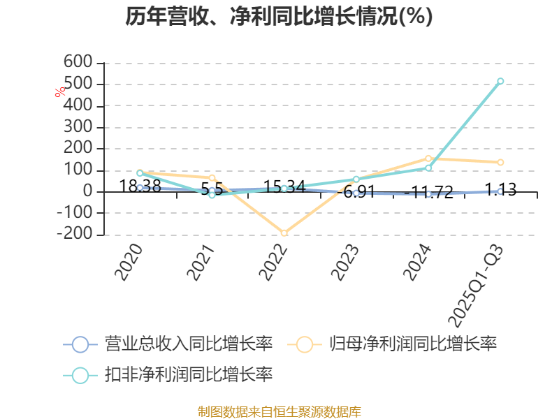 资产重大变化方面,截至2025年三季度末,公司存货较上年末增加6.38%,占公司总资产比重上升2.55个百分点;货币资金较上年末减少22.88%,占公司总资产比重下降2.24个百分点;交易性金融资产合计较上年末减少28.98%,占公司总资产比重下降1.69个百分点;应收票据及应收账款较上年末减少9.34%,占公司总资产比重下降1.33个百分点。