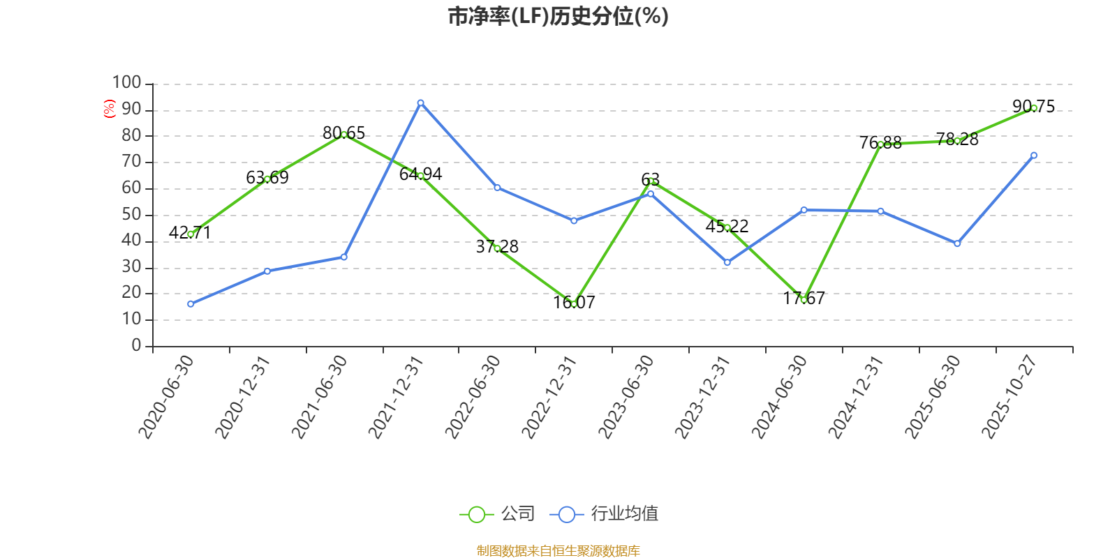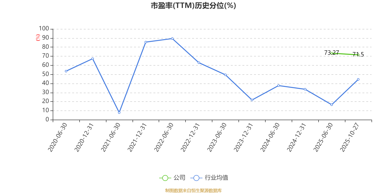 市盈率、市净率为负时,不显示当期分位数,会导致折线图中断。