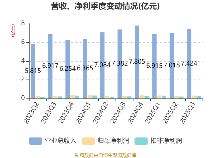 盈利能力方面, 2025年前三季度公司加权平均净资产收益率为7.94%,同比上升0.2个百分点。公司2025年前三季度投入资本回报率为7.25%,较上年同期下降0.08个百分点。