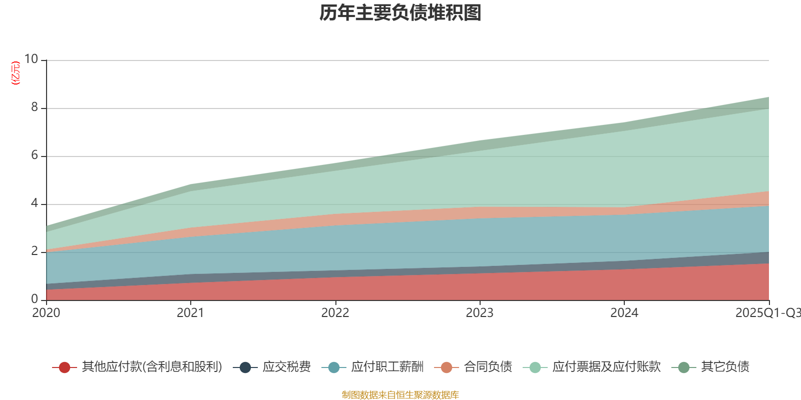 负债重大变化方面,截至2025年三季度末,公司合同负债较上年末增加100.15%,占公司总资产比重上升1.33个百分点;短期借款占公司总资产的1.01%,上年末为0;应付职工薪酬较上年末减少0.3%,占公司总资产比重下降0.79个百分点;其他应付款(含利息和股利)较上年末增加18.97%,占公司总资产比重上升0.63个百分点。