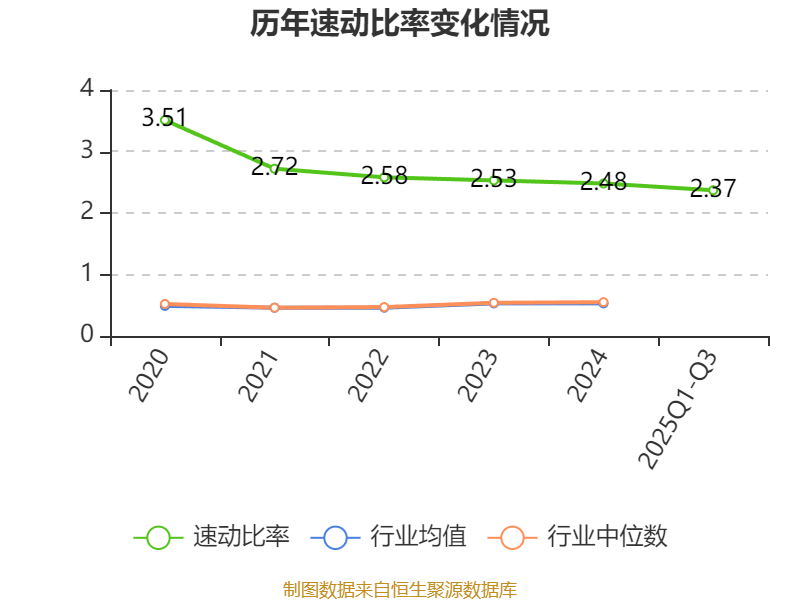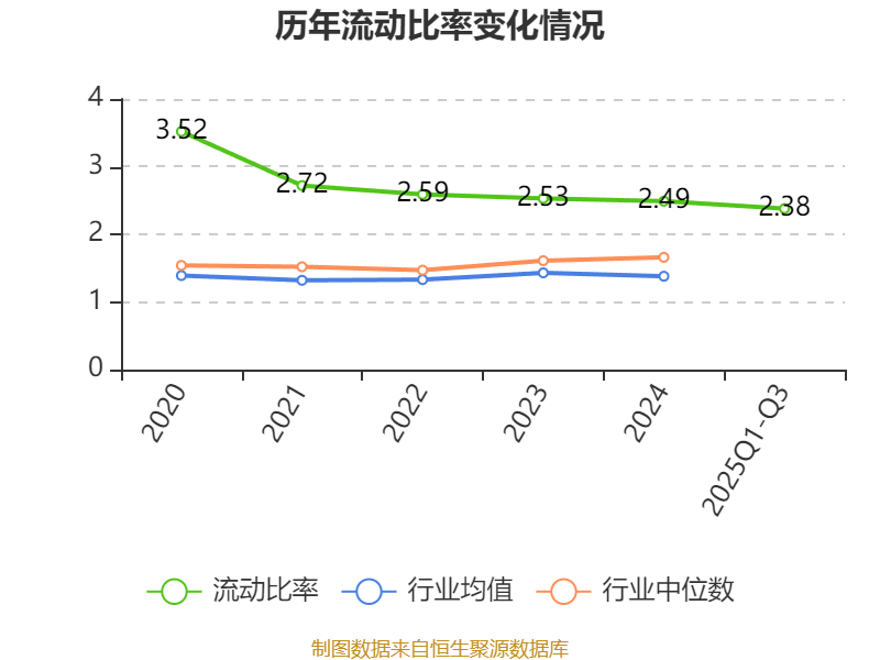 2025年前三季度,公司流动比率为2.38,速动比率为2.37。