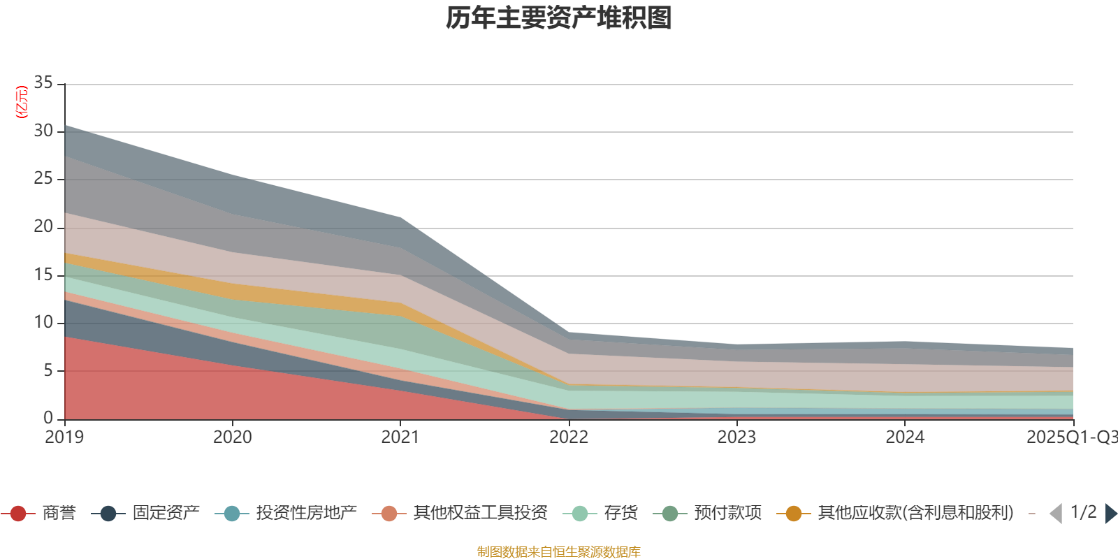 资产重大变化方面,截至2025年三季度末,公司应收票据及应收账款较上年末减少16.38%,占公司总资产比重下降3.02个百分点;货币资金较上年末减少22.14%,占公司总资产比重下降3个百分点;存货较上年末增加4.57%,占公司总资产比重上升2.33个百分点;预付款项较上年末增加36.98%,占公司总资产比重上升1.87个百分点。