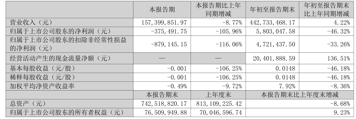 中证智能财讯亚联发展(002316)10月28日披露2025年第三季度报告。前三季度公司实现营业总收入4.43亿元,同比增长4.22%;归母净利润580.3万元,同比下降46.32%;扣非净利润472.14万元,同比下降33.26%;经营活动产生的现金流量净额为2040.19万元,上年同期为-5588.68万元;报告期内,亚联发展基本每股收益为0.0148元,加权平均净资产收益率为7.92%。