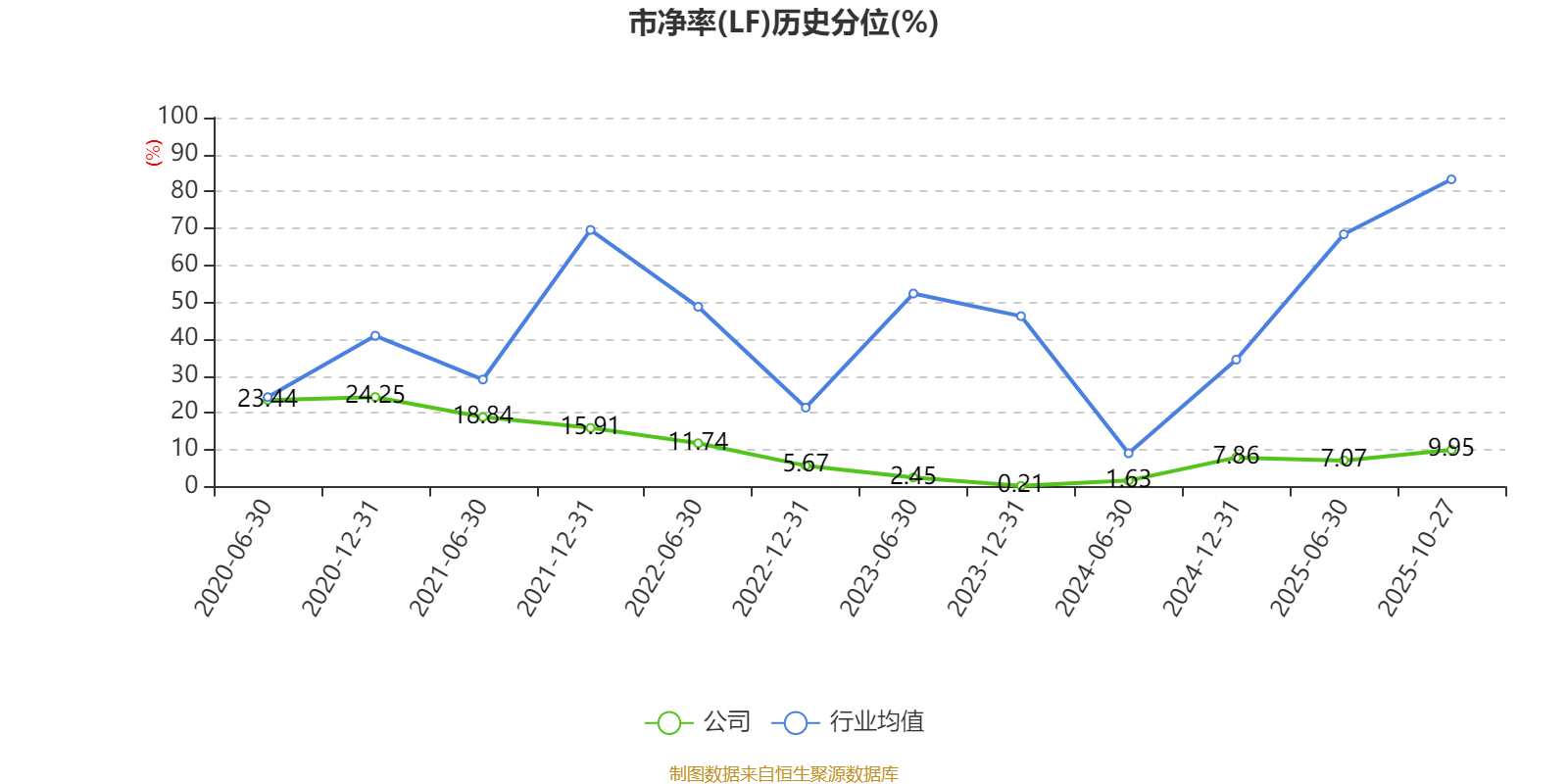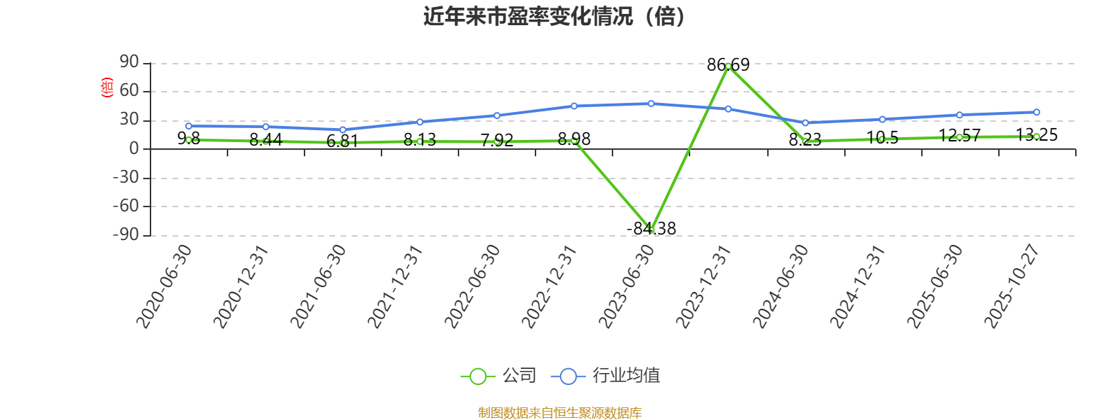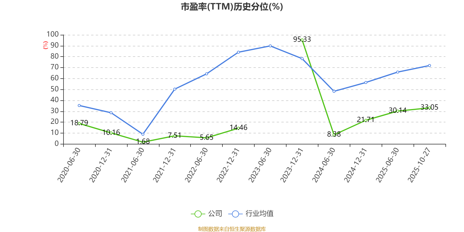 市盈率、市净率为负时,不显示当期分位数,会导致折线图中断。