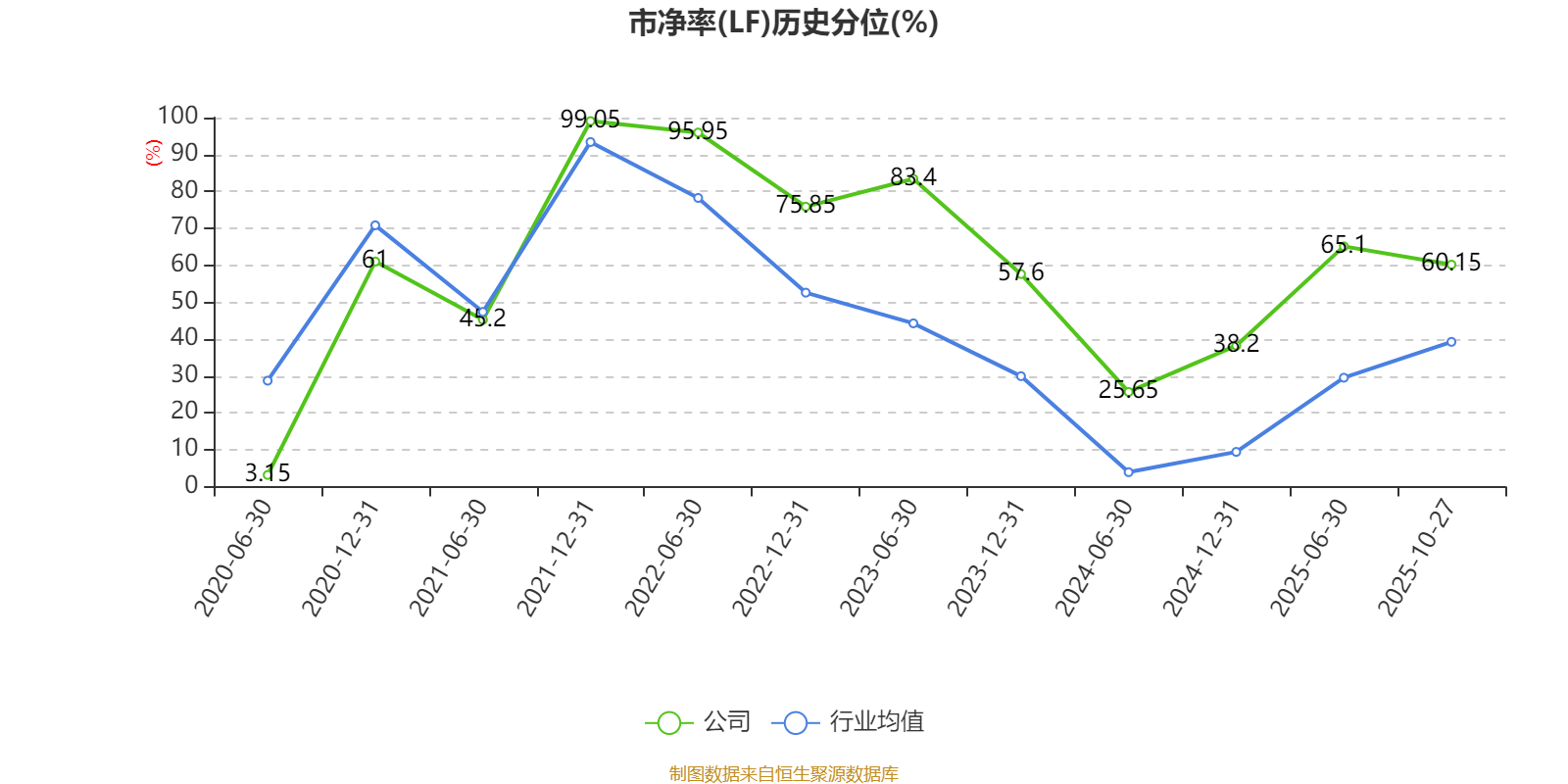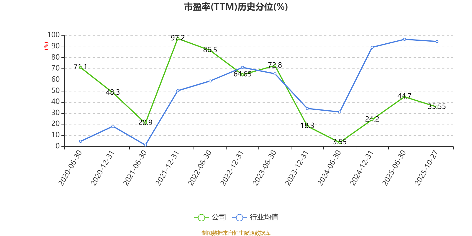 市盈率、市净率为负时,不显示当期分位数,会导致折线图中断。
