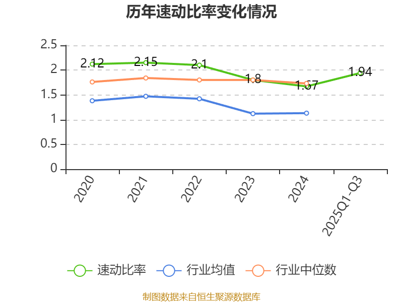 2025年前三季度,公司流动比率为2.32,速动比率为1.94。