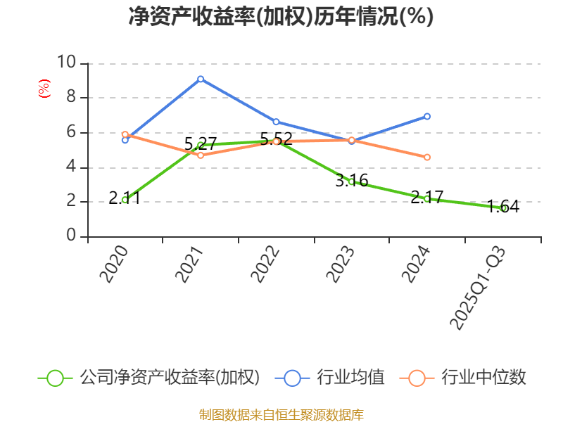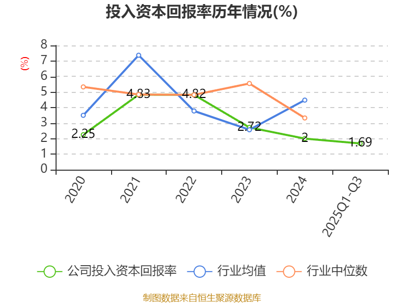 盈利能力方面, 2025年前三季度公司加权平均净资产收益率为1.64%,同比下降0.58个百分点。公司2025年前三季度投入资本回报率为1.69%,较上年同期下降0.38个百分点。