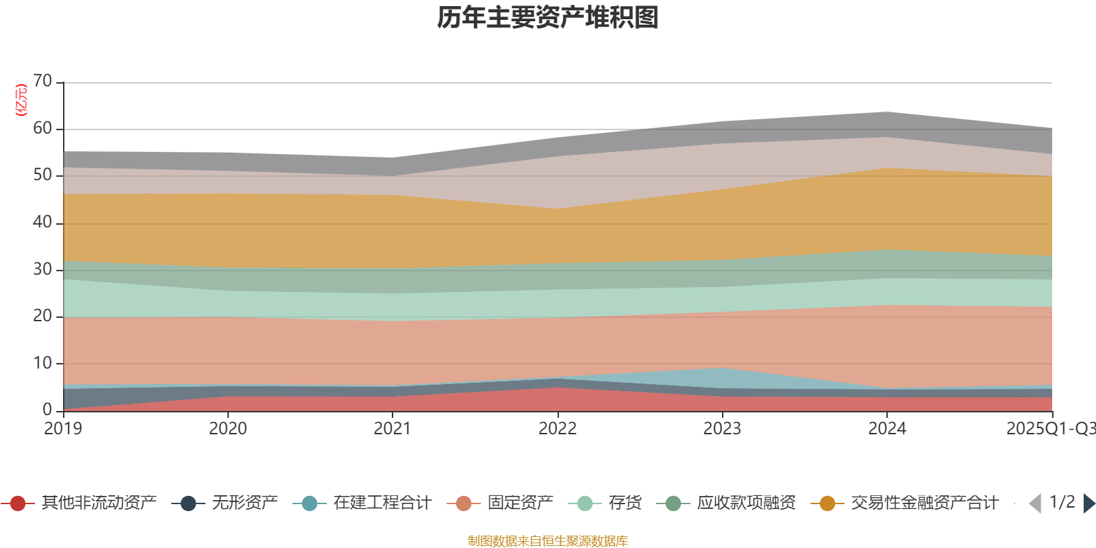 资产重大变化方面,截至2025年三季度末,公司货币资金较上年末减少27.92%,占公司总资产比重下降2.44个百分点;应收票据及应收账款较上年末增加46.47%,占公司总资产比重上升1.32个百分点;应收款项融资较上年末减少18.4%,占公司总资产比重下降1.32个百分点;在建工程合计较上年末增加206%,占公司总资产比重上升1个百分点。