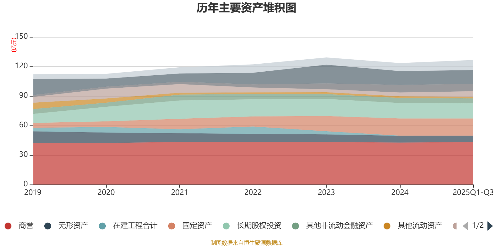 资产重大变化方面,截至2025年三季度末,公司交易性金融资产合计较上年末增加45.18%,占公司总资产比重上升1.33个百分点;预付款项较上年末增加178.62%,占公司总资产比重上升1.18个百分点;长期股权投资较上年末减少2.33%,占公司总资产比重下降0.61个百分点;无形资产较上年末减少8.16%,占公司总资产比重下降0.58个百分点。
