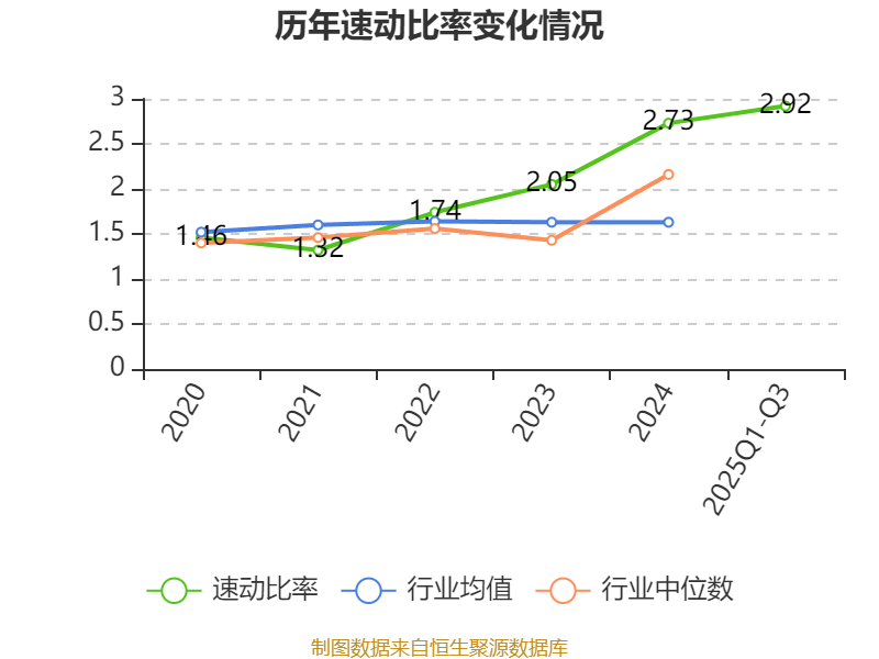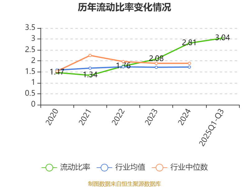 2025年前三季度,公司流动比率为3.04,速动比率为2.92。
