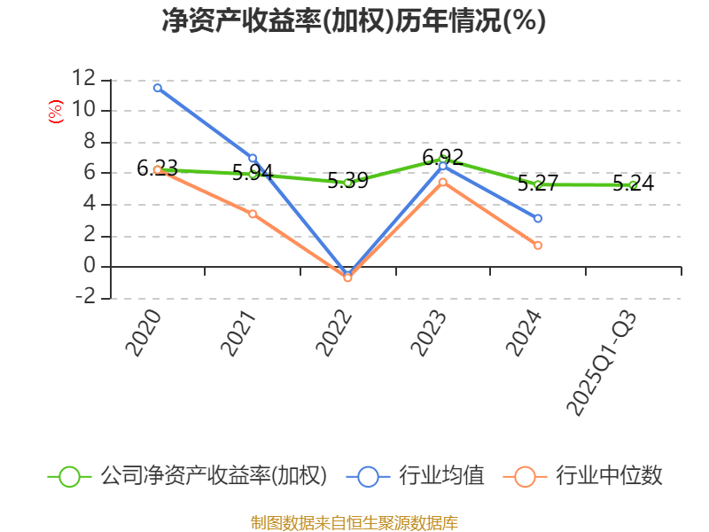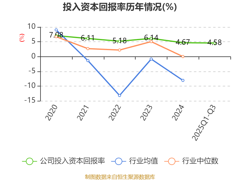盈利能力方面, 2025年前三季度公司加权平均净资产收益率为5.24%,同比上升0.51个百分点。公司2025年前三季度投入资本回报率为4.58%,较上年同期上升0.61个百分点。
