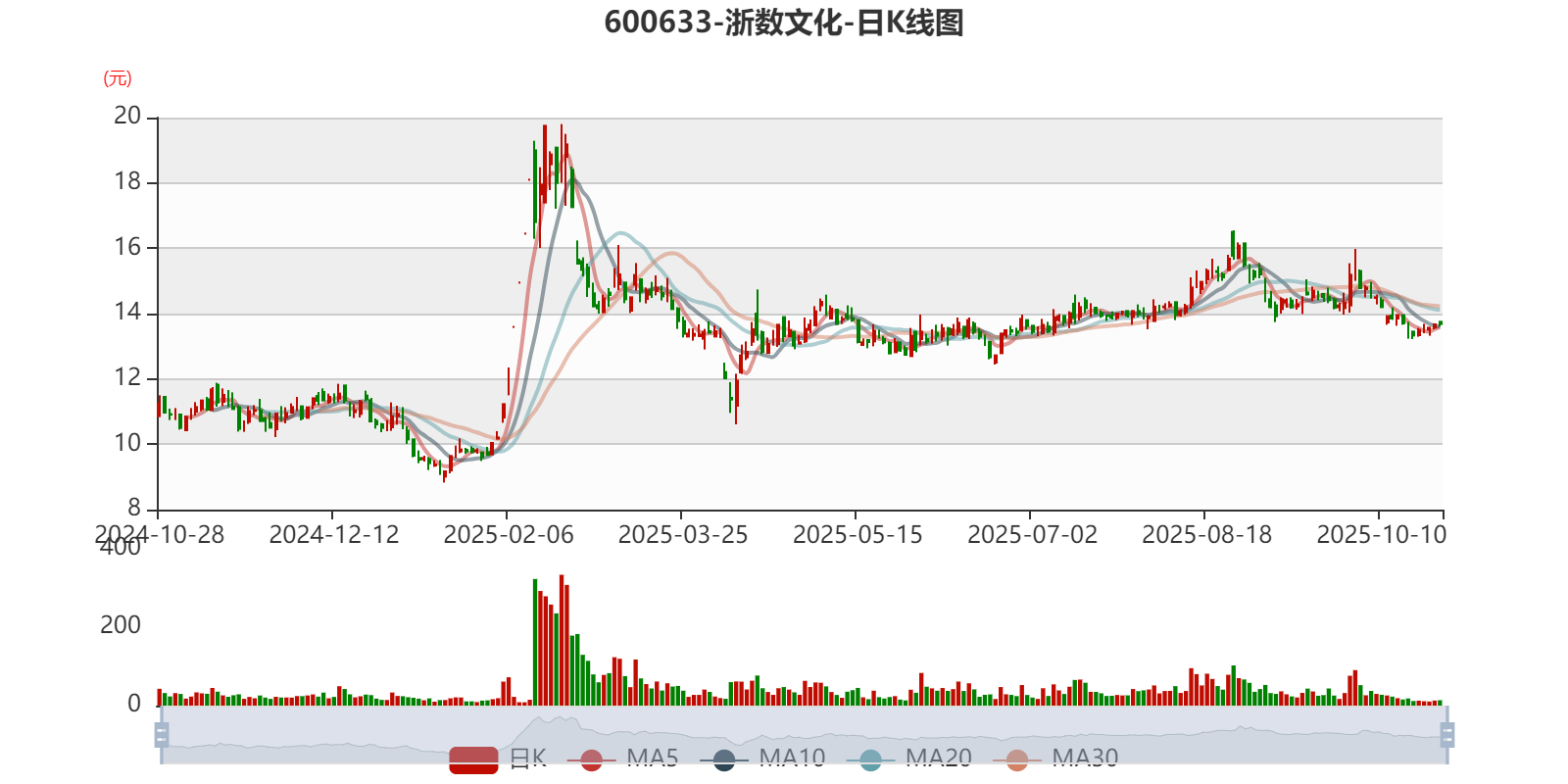 三季报显示,2025年三季度末的公司十大流通股东中,持股最多的为浙报传媒控股集团有限公司,占比33.032%。在具体持股比例上,华夏中证动漫游戏交易型开放式指数证券投资基金、中国人寿保险股份有限公司-传统-普通保险产品-005L-CT001沪持股有所上升,香港中央结算有限公司、南方中证1000交易型开放式指数证券投资基金持股有所下降。