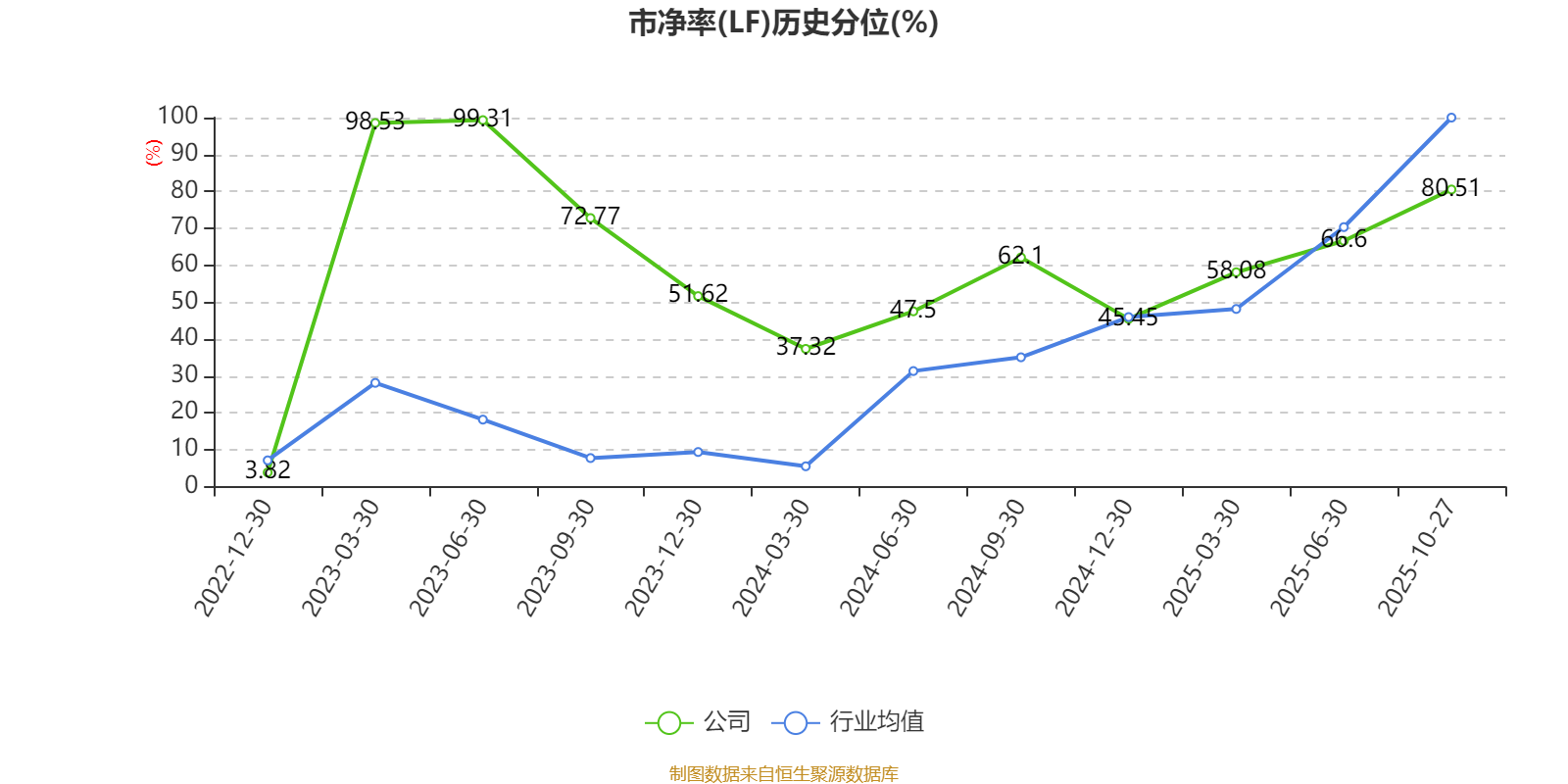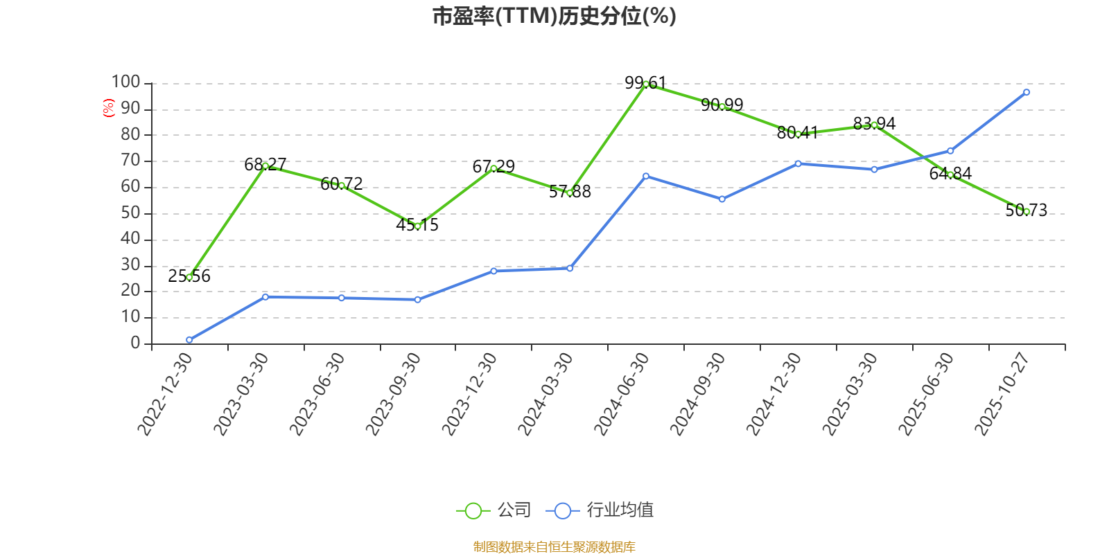 市盈率、市净率为负时,不显示当期分位数,会导致折线图中断。