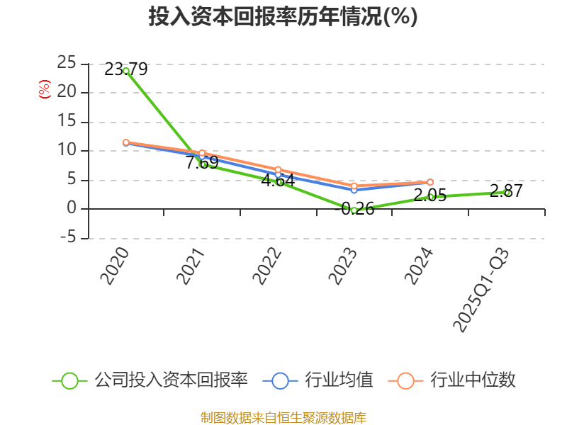 盈利能力方面, 2025年前三季度公司加权平均净资产收益率为3.27%,同比上升1.17个百分点。公司2025年前三季度投入资本回报率为2.87%,较上年同期上升1.07个百分点。
