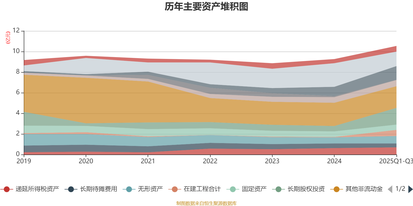 资产重大变化方面,截至2025年三季度末,公司货币资金较上年末减少38.64%,占公司总资产比重下降11.41个百分点;长期股权投资较上年末增加211.23%,占公司总资产比重上升9.76个百分点;在建工程合计较上年末增加1451.57%,占公司总资产比重上升5.19个百分点;其他非流动金融资产较上年末减少6.82%,占公司总资产比重下降4.39个百分点。