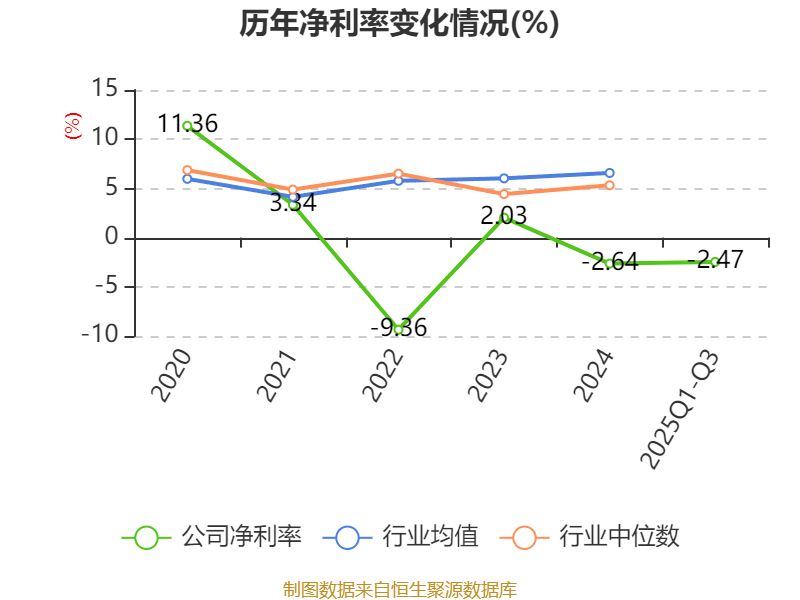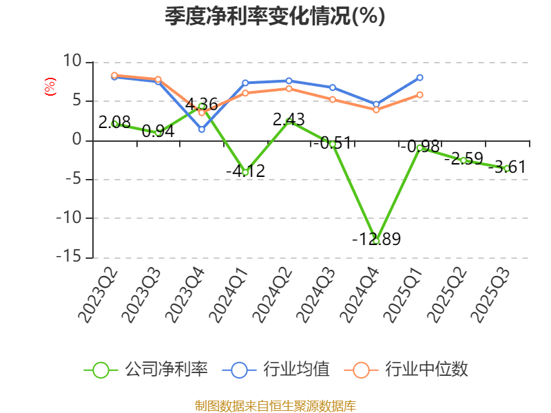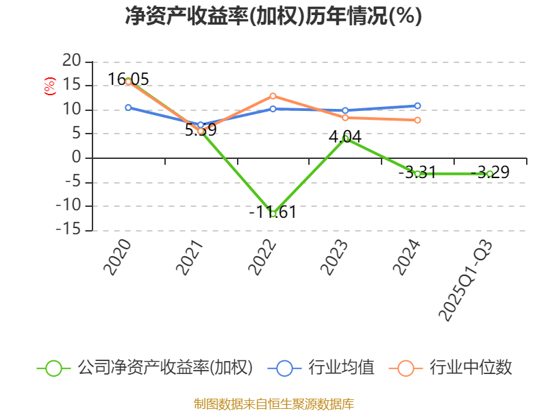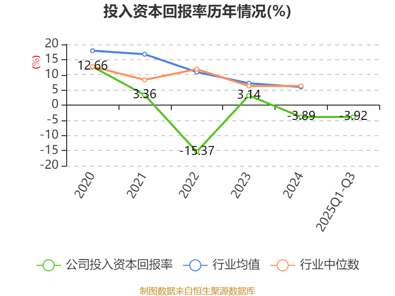 盈利能力方面, 2025年前三季度公司加权平均净资产收益率为-3.29%,同比下降3.76个百分点。公司2025年前三季度投入资本回报率为-3.92%,较上年同期下降2.95个百分点。