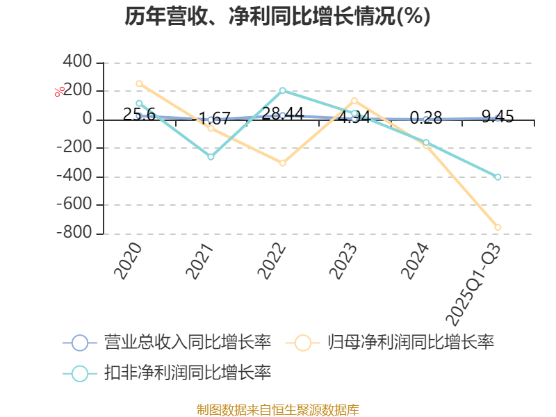 负债重大变化方面,截至2025年三季度末,公司其他应付款(含利息和股利)较上年末增加105.55%,占公司总资产比重上升3.45个百分点;应付票据及应付账款较上年末增加58.42%,占公司总资产比重上升3.36个百分点;长期递延收益较上年末增加54.85%,占公司总资产比重上升3.13个百分点;短期借款占公司总资产的2.66%,上年末为0。