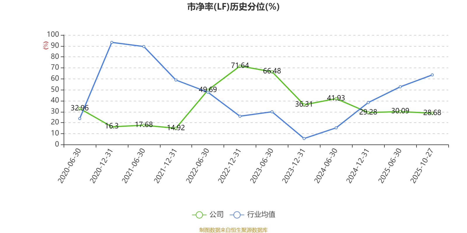 市盈率、市净率为负时,不显示当期分位数,会导致折线图中断。