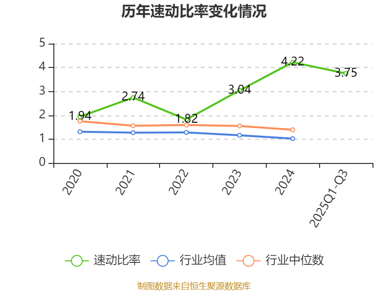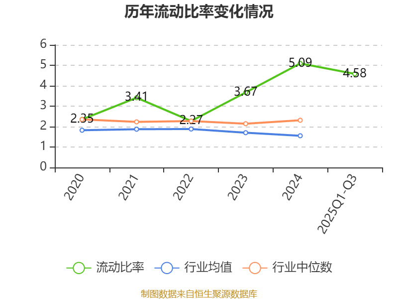 2025年前三季度,公司流动比率为4.58,速动比率为3.75。