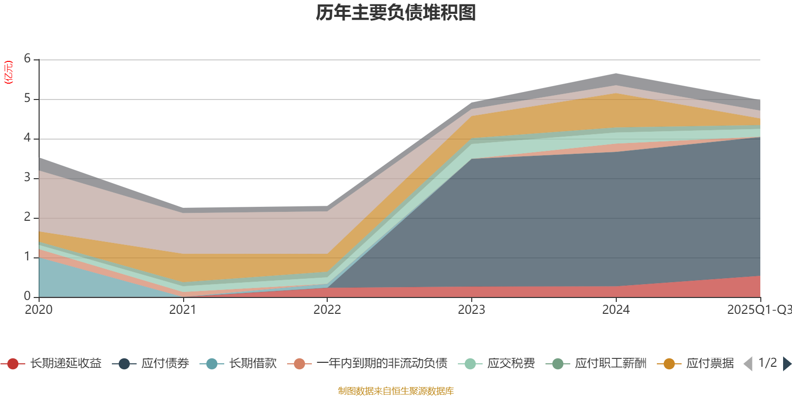 负债重大变化方面,截至2025年三季度末,公司应付票据及应付账款较上年末减少80.93%,占公司总资产比重下降3.68个百分点;长期递延收益较上年末增加98.42%,占公司总资产比重上升1.52个百分点;应付债券较上年末增加3.32%,占公司总资产比重上升1.37个百分点;一年内到期的非流动负债较上年末减少95.59%,占公司总资产比重下降1.06个百分点。