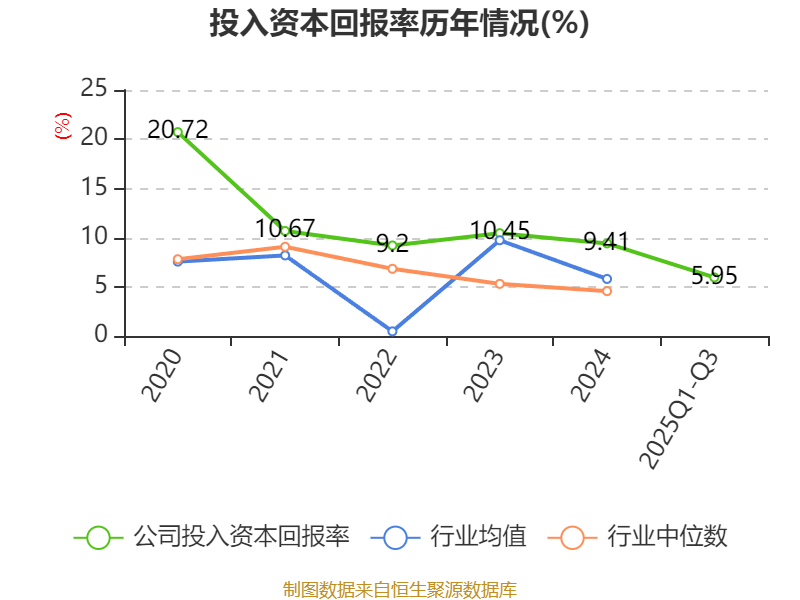 盈利能力方面, 2025年前三季度公司加权平均净资产收益率为6.85%,同比下降0.25个百分点。公司2025年前三季度投入资本回报率为5.95%,较上年同期上升0.02个百分点。