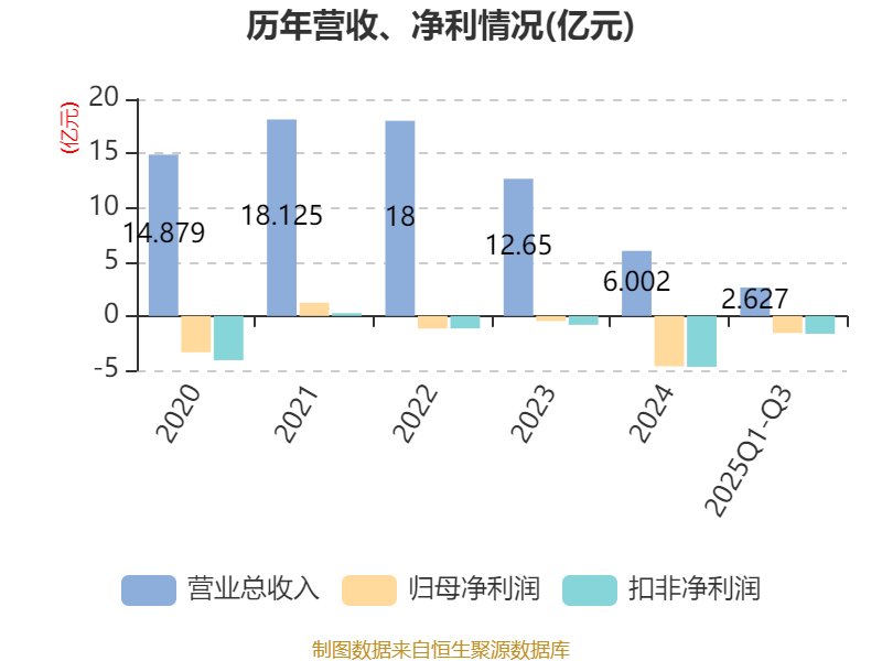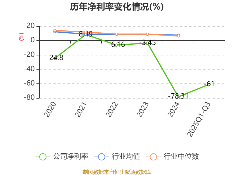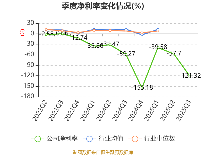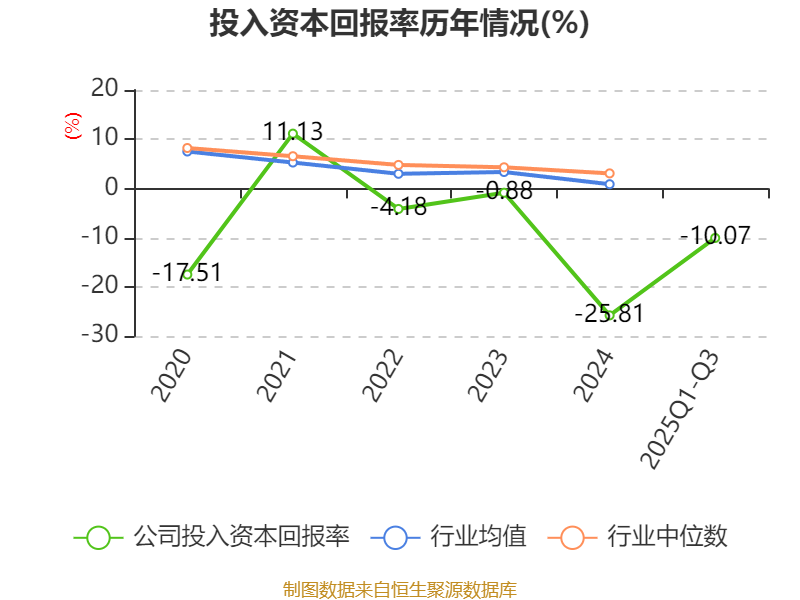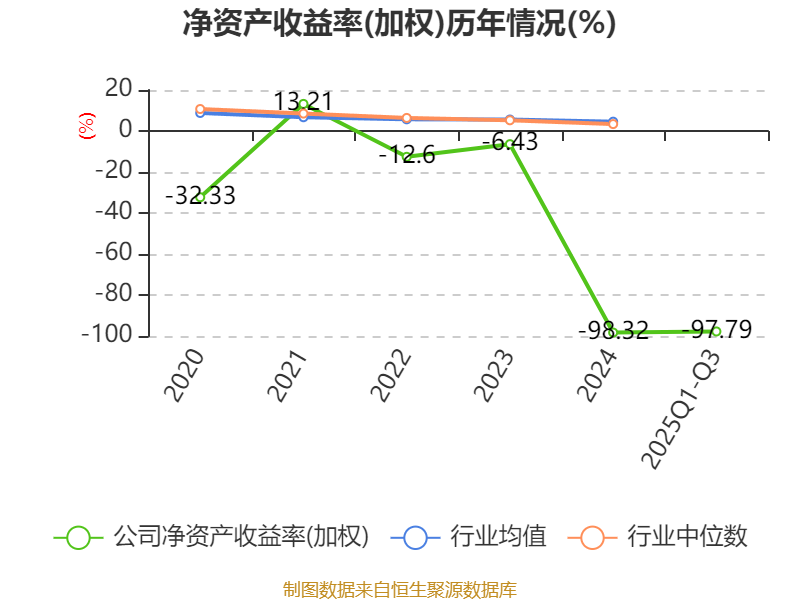 盈利能力方面, 2025年前三季度公司加权平均净资产收益率为-97.79%,同比下降73.73个百分点。公司2025年前三季度投入资本回报率为-10.07%,较上年同期下降3.54个百分点。