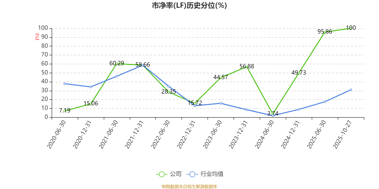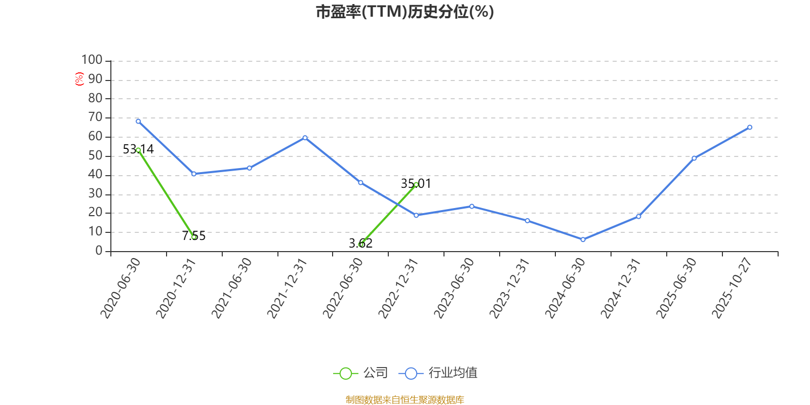 市盈率、市净率为负时,不显示当期分位数,会导致折线图中断。