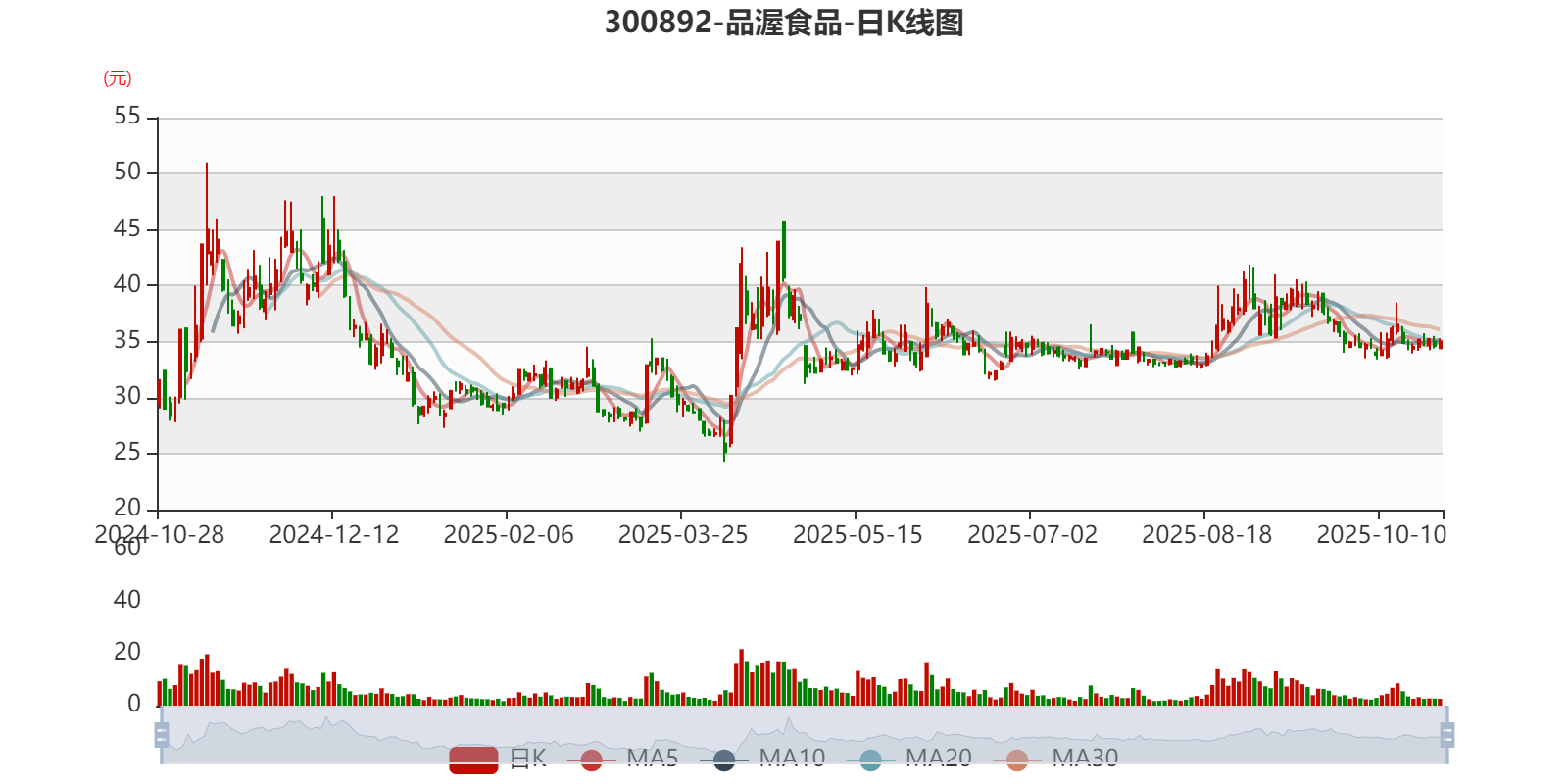 以10月27日收盘价计算,品渥食品目前市盈率(TTM)约为140.86倍,市净率(LF)约3.33倍,市销率(TTM)约4.23倍。