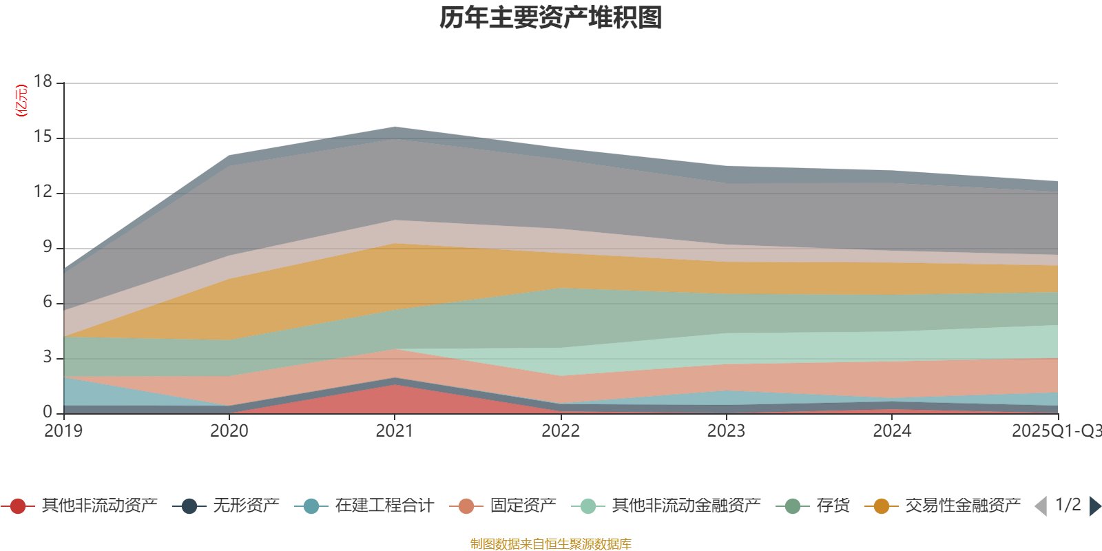 资产重大变化方面,截至2025年三季度末,公司在建工程合计较上年末增加266.27%,占公司总资产比重上升4.19个百分点;其他非流动金融资产较上年末增加10.76%,占公司总资产比重上升1.94个百分点;交易性金融资产合计较上年末减少17.09%,占公司总资产比重下降1.76个百分点;其他非流动资产较上年末减少96.88%,占公司总资产比重下降1.6个百分点。