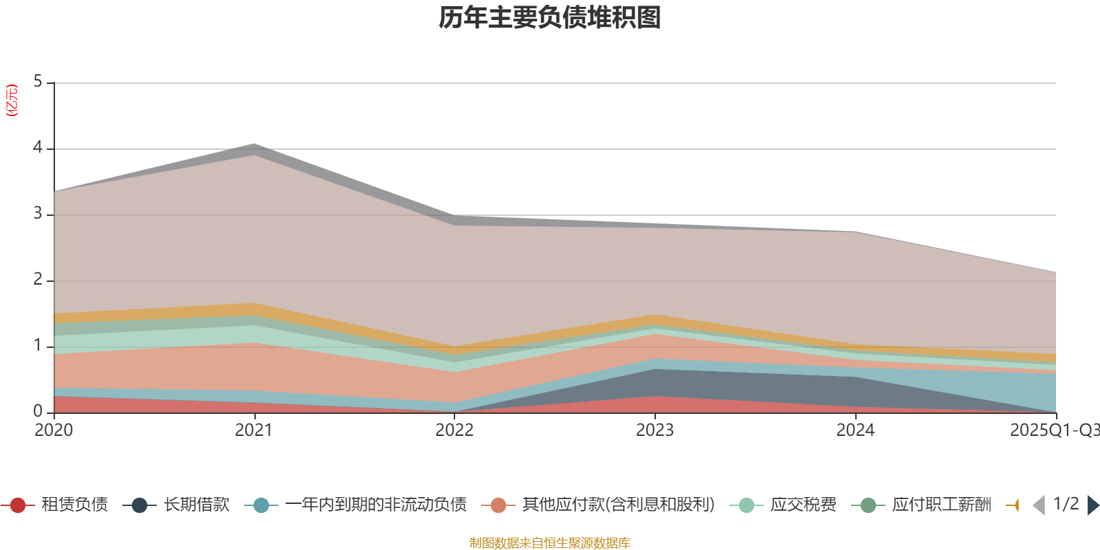 负债重大变化方面,截至2025年三季度末,公司一年内到期的非流动负债较上年末增加303.98%,占公司总资产比重上升3.53个百分点;长期借款较上年末减少100%,占公司总资产比重下降3.43个百分点;应付票据及应付账款较上年末减少27.28%,占公司总资产比重下降3.07个百分点;租赁负债较上年末减少96.92%,占公司总资产比重下降0.62个百分点。