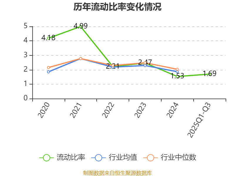 2025年前三季度,公司流动比率为1.69,速动比率为1.26。