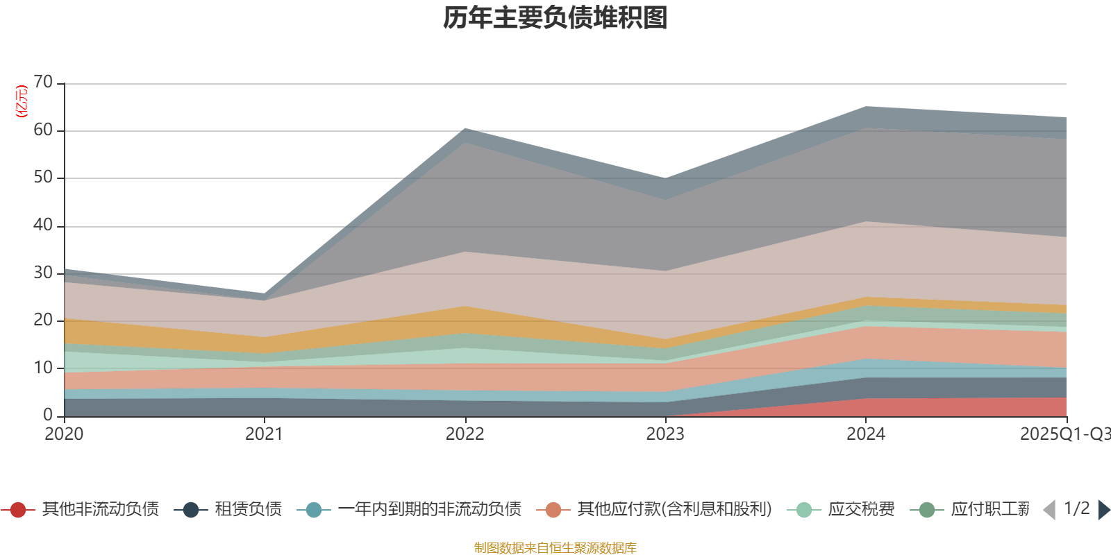 负债重大变化方面,截至2025年三季度末,公司一年内到期的非流动负债较上年末减少47.96%,占公司总资产比重下降1.04个百分点;应付票据及应付账款较上年末减少10.06%,占公司总资产比重下降0.93个百分点;短期借款较上年末增加4.56%,占公司总资产比重上升0.4个百分点;其他应付款(含利息和股利)较上年末增加10.62%,占公司总资产比重上升0.36个百分点。