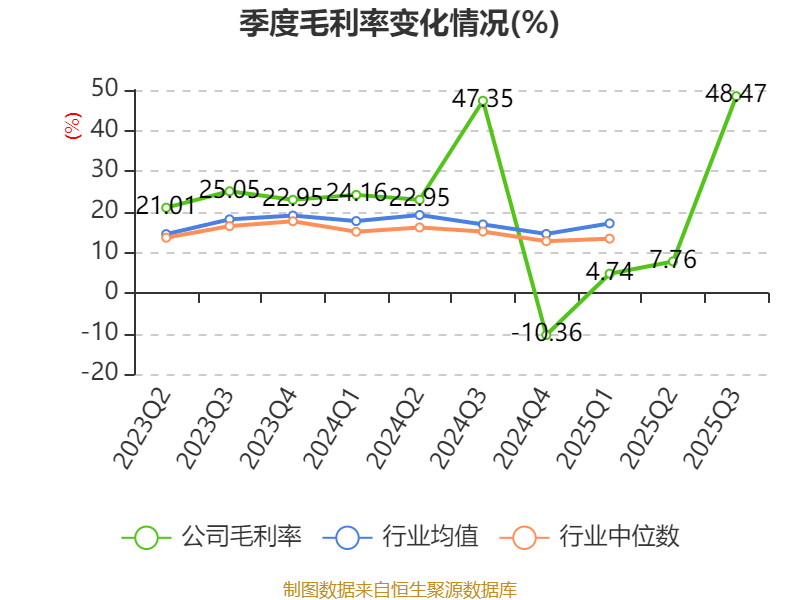资产重大变化方面,截至2025年三季度末,公司固定资产较上年末增加45.32%,占公司总资产比重上升16.3个百分点;在建工程合计较上年末减少90.16%,占公司总资产比重下降12.99个百分点;货币资金较上年末减少19.84%,占公司总资产比重下降6.5个百分点;应收款项融资较上年末增加183.43%,占公司总资产比重上升3.14个百分点。