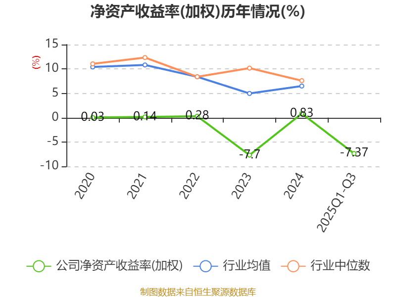 盈利能力方面, 2025年前三季度公司加权平均净资产收益率为-7.37%,同比下降5.53个百分点。公司2025年前三季度投入资本回报率为-2.54%,较上年同期下降2.91个百分点。