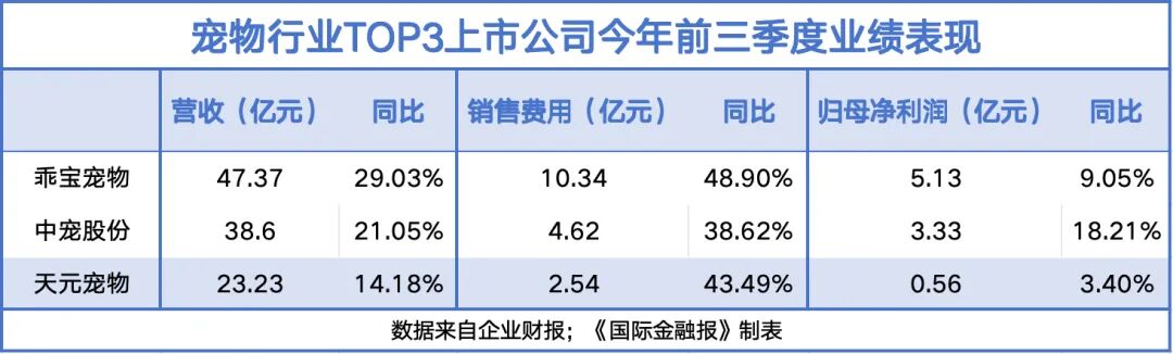 第三季度,天元宠物更是陷入“增收不增利”困境。