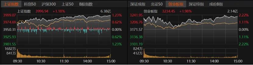 今日A股“量价齐升”,交易量能放量至2.36万亿元。沪指收涨1.18%报3996.94点,创业板指收涨1.98%报3234.45点,科创50、沪深300、上证50上涨,北证50微跌。截至10月24日,沪深京两融余额增至2.46万亿元。