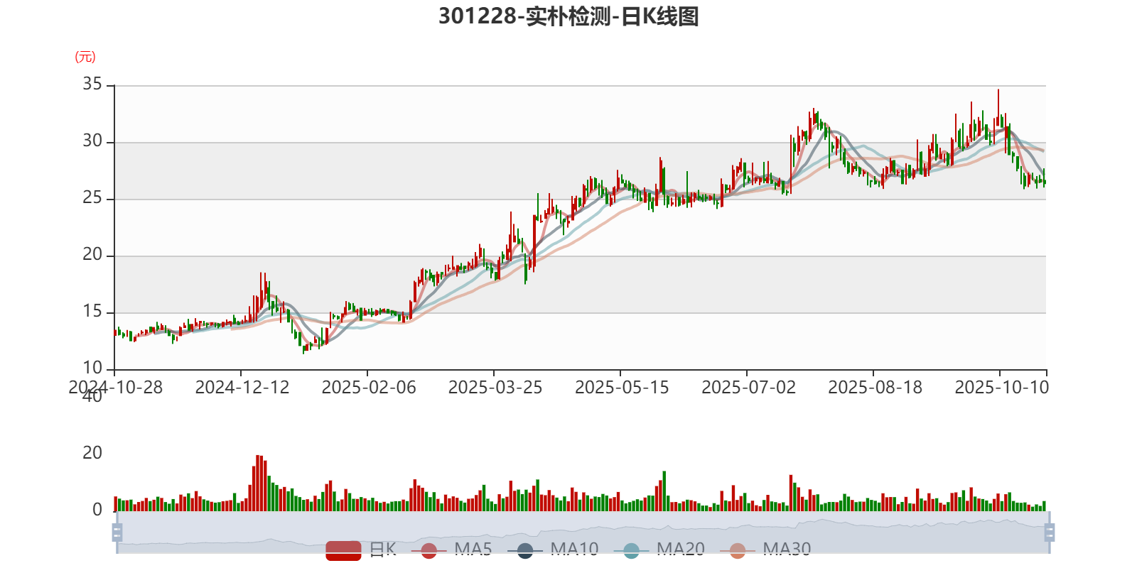 以10月27日收盘价计算,实朴检测目前市盈率(TTM)约为-46.62倍,市净率(LF)约4.58倍,市销率(TTM)约8.17倍。