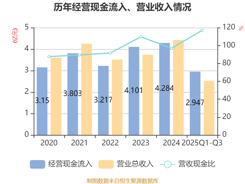 2025年前三季度,公司流动比率为2.38,速动比率为2。