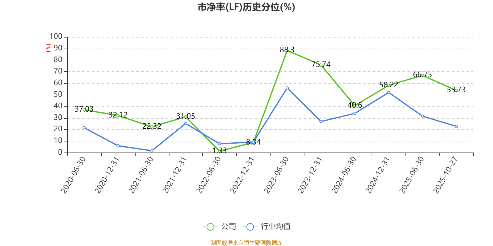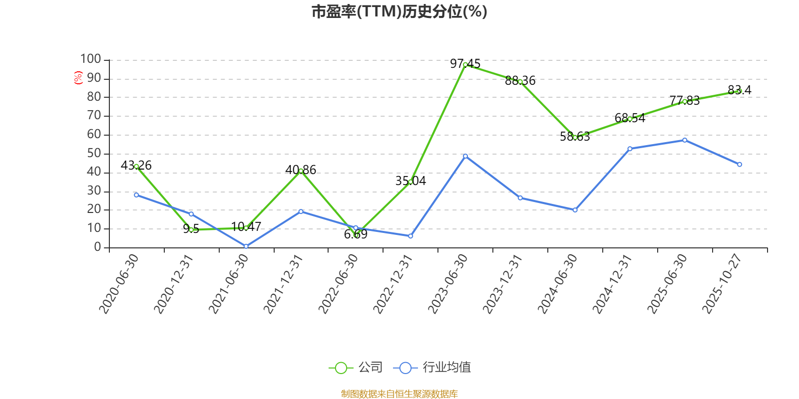 市盈率、市净率为负时,不显示当期分位数,会导致折线图中断。