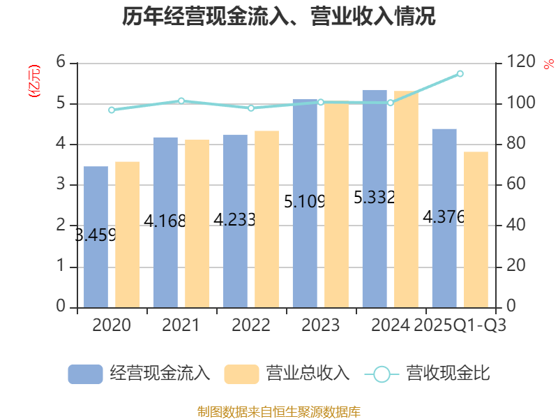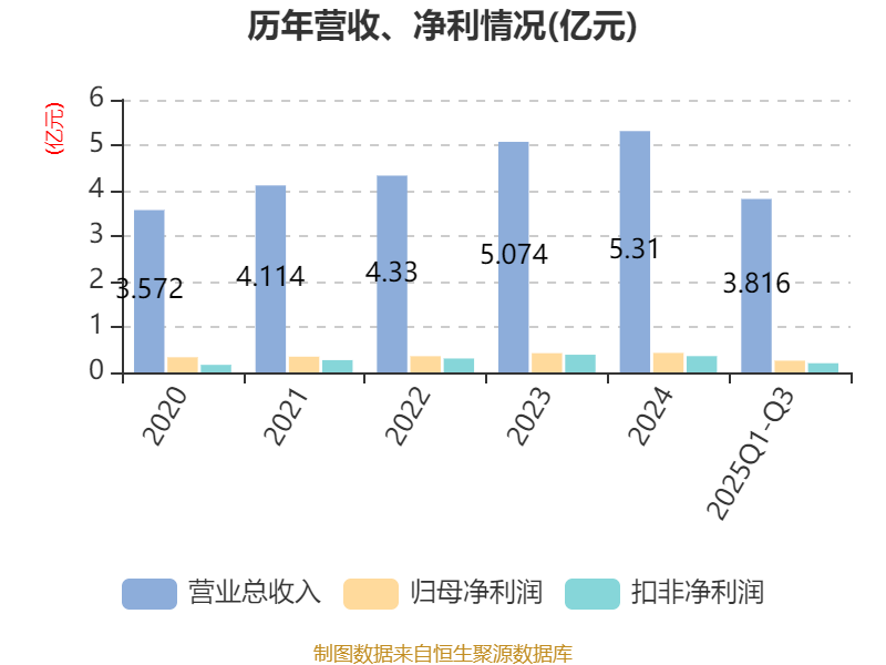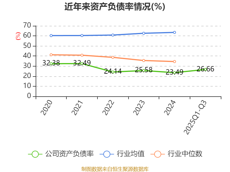 2025年前三季度,公司流动比率为3.3,速动比率为3.06。