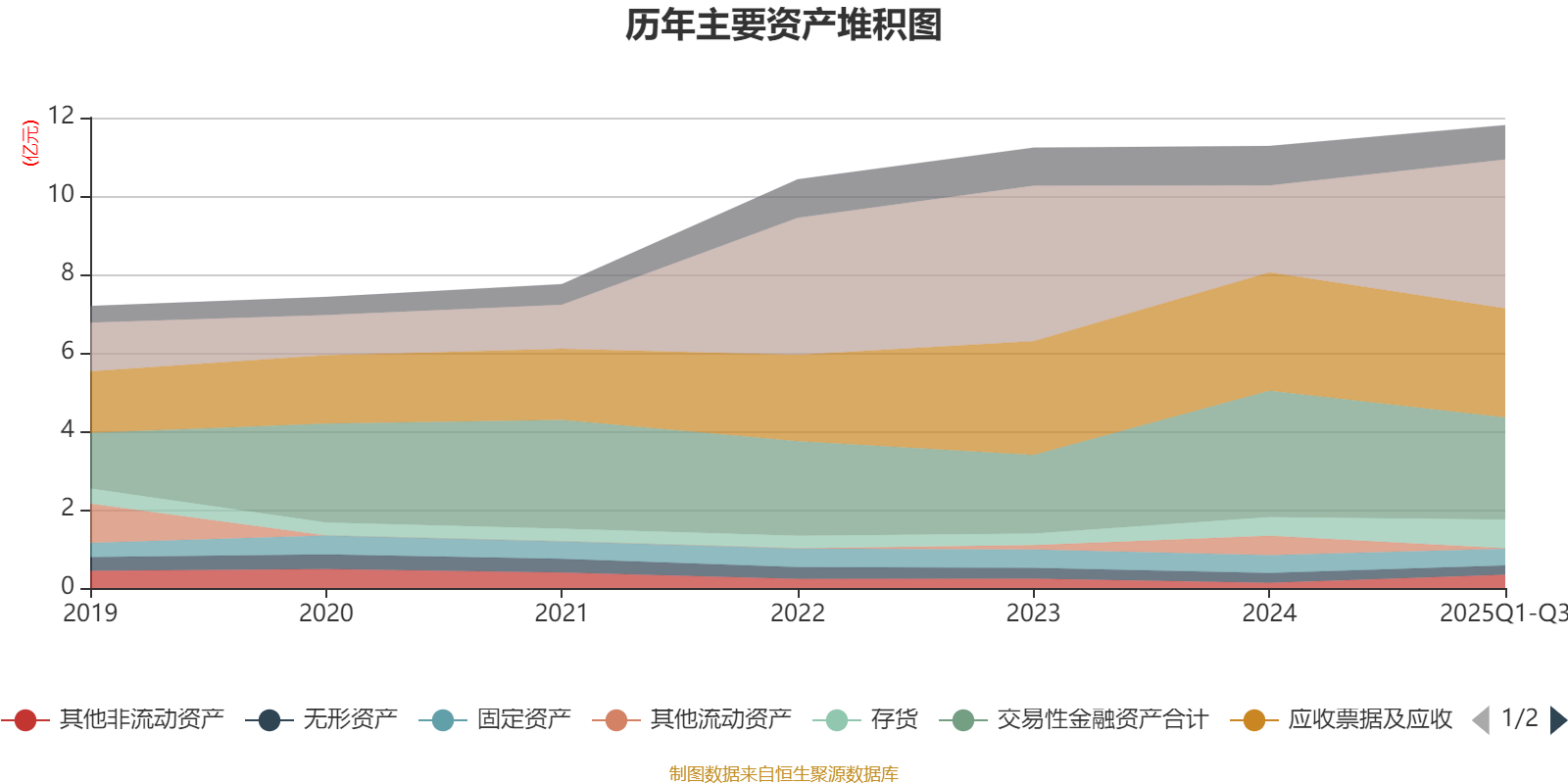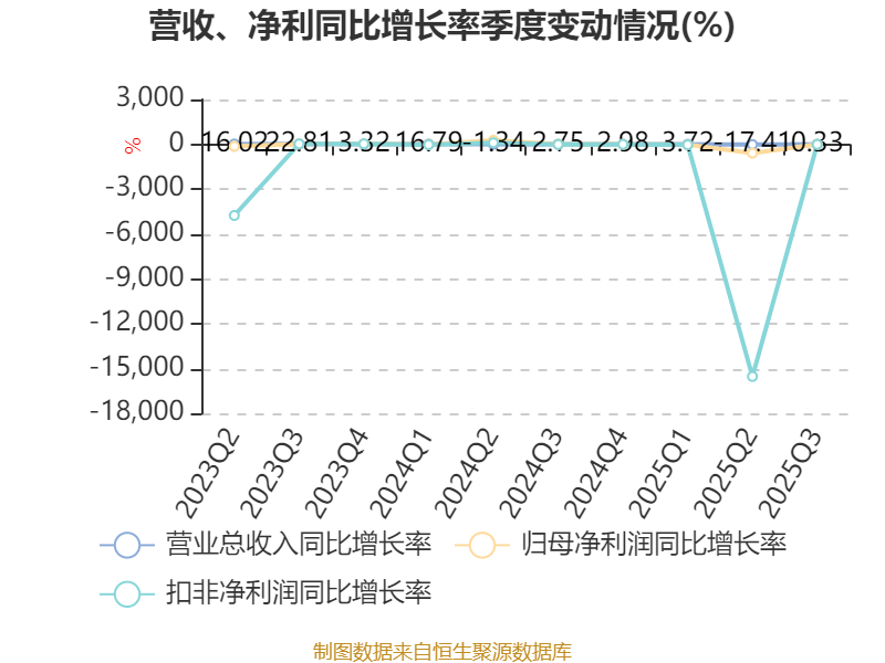 资产重大变化方面,截至2025年三季度末,公司货币资金较上年末增加71.33%,占公司总资产比重上升12.51个百分点;交易性金融资产合计较上年末减少19.1%,占公司总资产比重下降6.51个百分点;其他流动资产较上年末减少97.59%,占公司总资产比重下降4.29个百分点;应收票据及应收账款较上年末减少7.97%,占公司总资产比重下降3.25个百分点。